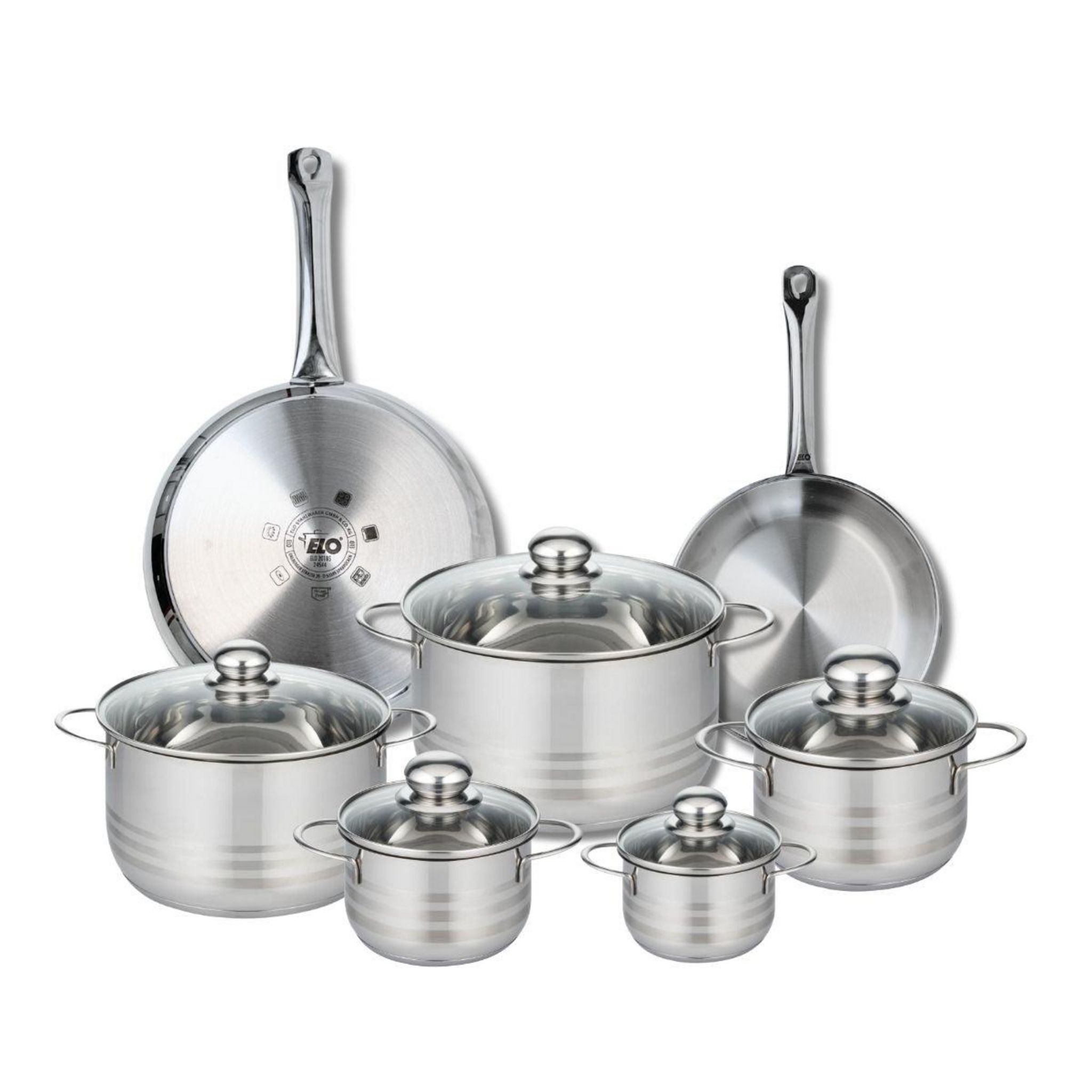 Ensemble de 2 Poêles de cuisson 24 et 28 cm et 5 faitouts 12, 14, 16, 20 et 24 cm Elo Profi Brillant