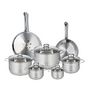 Complétant cet ensemble, cinq faitouts de 12, 14, 16, 20 et 24 cm vous offrent une flexibilité inégalée pour préparer tout type de plat, des soupes et ragoûts aux légumes vapeur. Fabriqués en inox de haute qualité, ces faitouts sont conçus pour résister à l'épreuve du temps, tout en étant compatibles avec tous les types de plaques de cuisson, y compris l'induction.