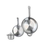 Découvrez l'ensemble de cuisine Elo Profi Citrin, comprenant deux poêles de cuisson de 24 et 32 cm, ainsi qu'un faitout de 12 cm, tous en inox de haute qualité, conçus pour répondre à tous vos besoins culinaires. Les poêles Profi Therm, idéales pour saisir, rôtir ou mijoter, garantissent une cuisson