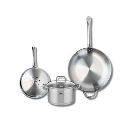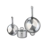 Découvrez l'ensemble de poêles et faitout Elo Profi Citrin, idéal pour tous les passionnés de cuisine. Cet ensemble comprend deux poêles de cuisson de 24 et 32 cm, ainsi qu'un faitout de 20 cm, tous en inox de haute qualité, sans revêtement. Leur conception en inox assure une robustesse exceptionnel