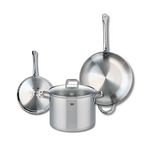 Découvrez notre lot de cuisine exceptionnel comprenant une poêle à frire de 24 cm, une poêle à frire en inox de 32 cm et une marmite en inox de 26 cm avec couvercle en verre, parfait pour les chefs en herbe et les cuisiniers confirmés.