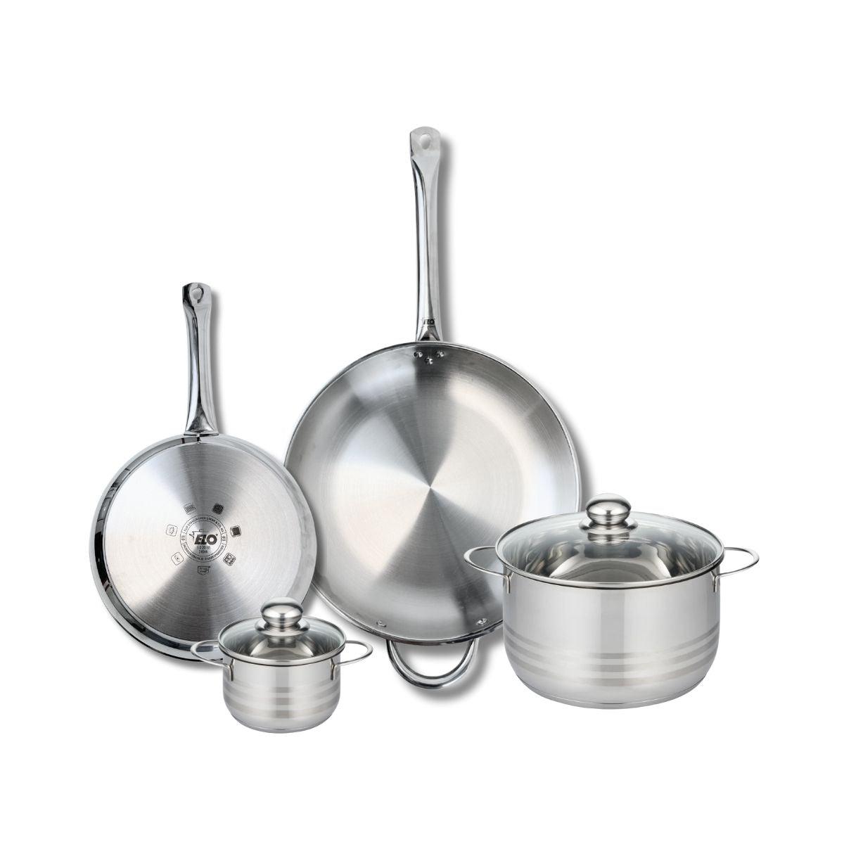 Découvrez l'ensemble de 4 pièces de cuisine Elo Profi Brillant, comprenant deux poêles de cuisson de 24 et 32 cm ainsi que deux faitouts de 12 et 20 cm. Fabriqués en acier inoxydable de haute qualité, ces ustensiles sont conçus pour résister aux rigueurs de la cuisine quotidienne tout en offrant une