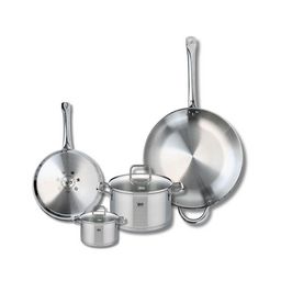 Découvrez notre lot de produits de cuisine de la collection ELO, alliant fonctionnalité et design élégant pour sublimer votre expérience culinaire. Ce lot comprend une poêle à frire de 24 cm et une poêle à frire en inox de 32 cm, idéales pour réaliser toutes vos recettes, des sautés de légumes aux plats de viande savoureux. La poêle de 24 cm, légère et maniable, est parfaite pour une cuisson rapide, tandis que celle de 32 cm, avec sa capacité de 3,6 litres, vous permet de préparer des repas pour toute la famille. Accompagnant ces poêles, notre marmite en inox de 12 cm avec couvercle en verre est parfaite pour la cuisson de petites portions, comme des sauces ou des légumes, vous permettant de garder un œil sur la cuisson sans perdre de chaleur. La marmite de 20 cm, quant à elle, est idéale pour les soupes, les pâtes ou les plats mijotés, offrant une grande capacité pour vos repas en famille ou entre amis. Tous ces ustensiles sont fabriqués en acier inoxydable de haute qualité, garantissant une durabilité exceptionnelle et une résistance à la corrosion. Leurs poignées ergonomiques assurent une prise en main confortable, tandis que les couvercles en verre permettent une surveillance facile de la cuisson. Compatibles avec tous les types de feux, y compris l'induction, ces produits sont également faciles à nettoyer, passant au lave-vaisselle. Optez pour ce lot ELO pour une cuisine pratique et élégante, adaptée à toutes vos envies culinaires.
