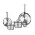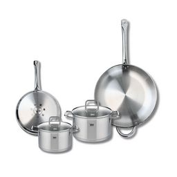 Découvrez l'ensemble de cuisine Elo Profi Citrin, une batterie de cuisine de 6 pièces comprenant deux poêles de cuisson de 24 et 32 cm, ainsi que deux faitouts de 16 et 20 cm. Conçus en inox de haute qualité, ces ustensiles offrent une robustesse exceptionnelle et une excellente conductivité thermiq