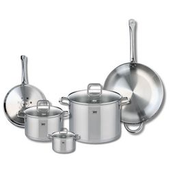 Découvrez l'ensemble de cuisine Elo Profi Citrin, composé de deux poêles de cuisson de 24 et 32 cm et de trois faitouts de 12, 20 et 26 cm. Conçus en inox de haute qualité, ces ustensiles de cuisine sont parfaits pour les passionnés de gastronomie et les cuisiniers du quotidien. Grâce à leur matéria