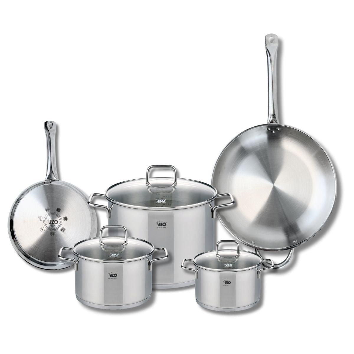 Découvrez l'ensemble de 2 poêles de cuisson et 3 faitouts Elo Profi Citrin, un choix idéal pour les passionnés de cuisine. Composé de poêles de 24 et 32 cm, ainsi que de faitouts de 16, 20 et 26 cm, cet ensemble répond à tous vos besoins culinaires. Fabriqués en inox de haute qualité, ces ustensiles