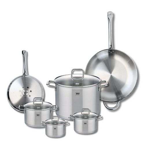Découvrez l'ensemble de 2 poêles de cuisson et 4 faitouts Elo Profi Citrin, une batterie de cuisine polyvalente et robuste conçue pour répondre à tous vos besoins culinaires. Les poêles de 24 et 32 cm, fabriquées en inox sans revêtement, offrent une excellente conductivité thermique, garantissant un