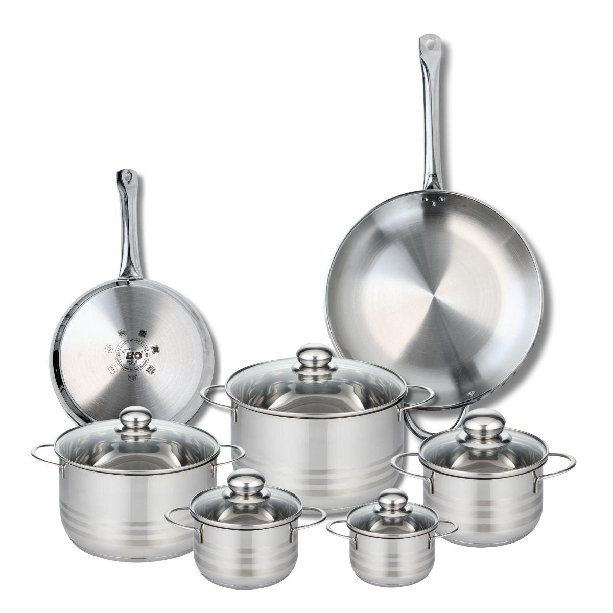 Ensemble de 2 Poêles de cuisson 24 et 32 cm et 5 faitouts 12, 14, 16, 20 et 24 cm Elo Profi Brillant