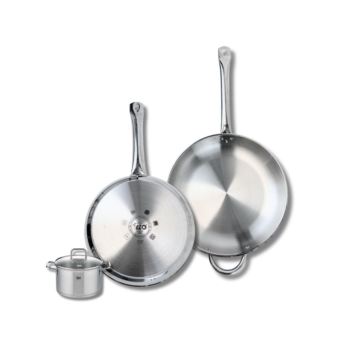 Ensemble de 2 Poêles de cuisson 28 et 32 cm et 1 faitout 12 cm Elo Profi Citrin