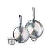 Fabriqués en acier inoxydable, les poêles et le faitout garantissent une robustesse et une longévité exceptionnelles. Leur conception sans revêtement et sans PFAS assure une cuisson saine, tout en préservant le goût authentique des aliments. Grâce à leur compatibilité avec toutes les sources de chaleur, y compris l'induction, vous pourrez les utiliser sur toutes vos plaques de cuisson.