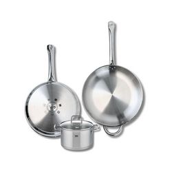 Découvrez l'ensemble de 2 poêles de cuisson de 28 et 32 cm ainsi qu'un faitout de 16 cm de la gamme Elo Profi Citrin, parfait pour tous vos besoins culinaires. Fabriqués en inox de haute qualité, ces ustensiles de cuisine garantissent une robustesse exceptionnelle et une excellente conduction de la