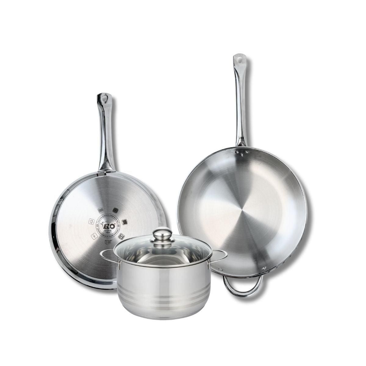 Ensemble de 2 Poêles de cuisson 28 et 32 cm et 1 faitout 20 cm Elo Profi Brillant