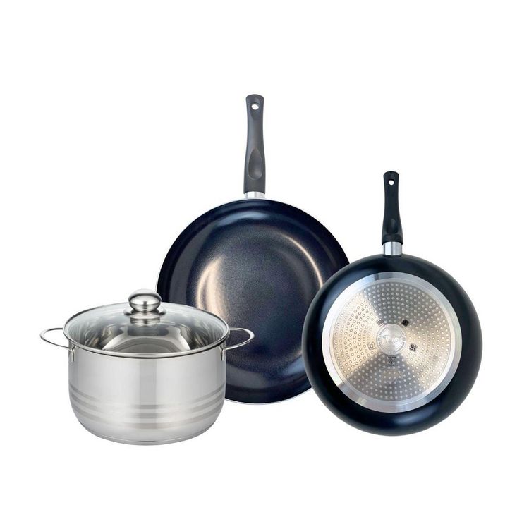 Ensemble de 2 Poêles de cuisson 28 et 32 cm et 1 faitout 24 cm Elo Prima Brillant