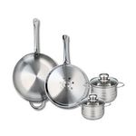 Découvrez l'ensemble de 2 poêles de cuisson et 2 faitouts Elo Profi Brillant, un choix idéal pour les passionnés de cuisine. Composé de poêles de 28 et 32 cm ainsi que de faitouts de 14 et 16 cm, cet ensemble répond à tous vos besoins culinaires, que ce soit pour saisir, mijoter ou cuire à la vapeur.