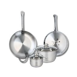Découvrez l'ensemble de 2 poêles de cuisson et 2 faitouts Elo Profi Brillant, une batterie de cuisine idéale pour tous vos besoins culinaires. Composé de poêles de 28 et 32 cm et de faitouts de 14 et 20 cm, cet ensemble en inox est conçu pour s'adapter à tous les types de cuisinières, y compris l'induction.