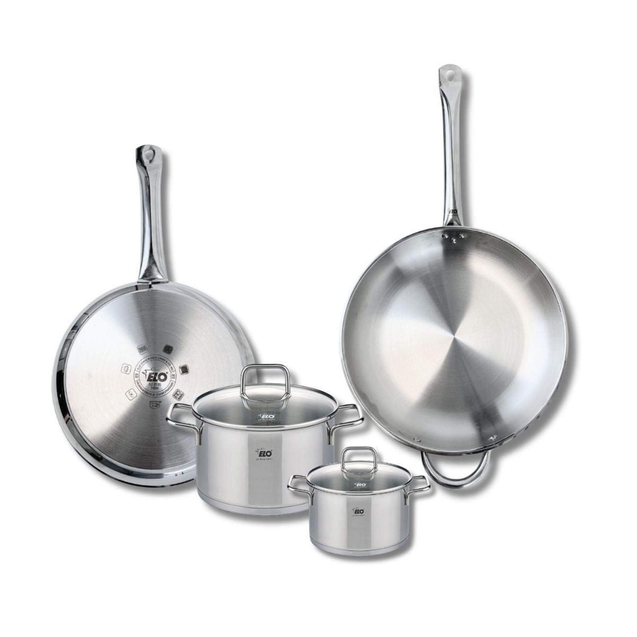 Ensemble de 2 Poêles de cuisson 28 et 32 cm et 2 faitouts 14 et 20 cm Elo Profi Citrin
