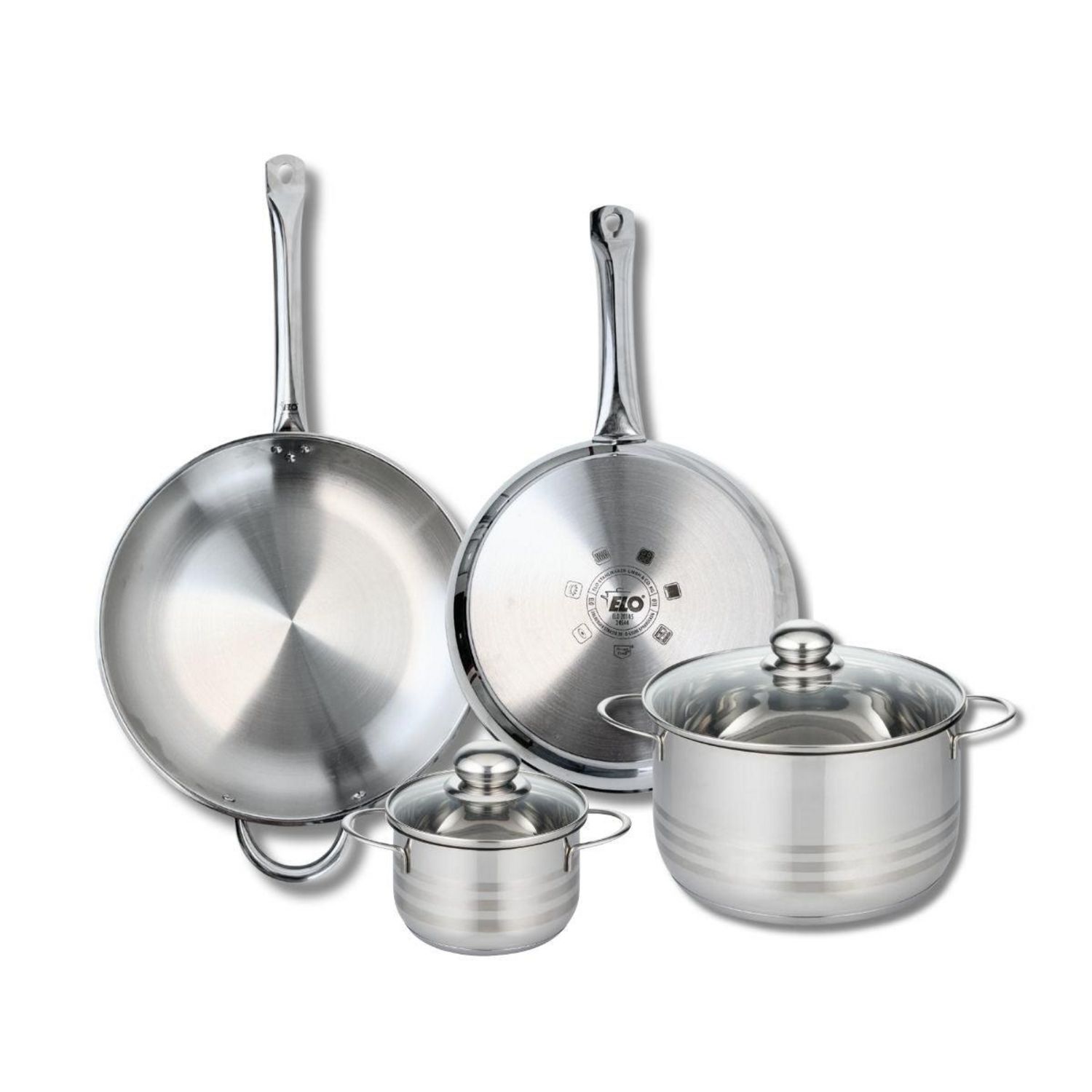 Ensemble de 2 Poêles de cuisson 28 et 32 cm et 2 faitouts 14 et 24 cm Elo Profi Brillant
