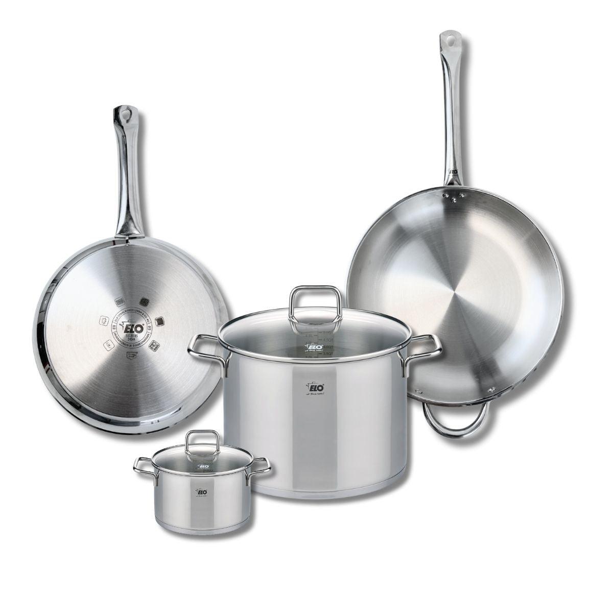 Découvrez l'ensemble de 2 poêles de cuisson et 2 faitouts Elo Profi Citrin, une batterie de cuisine essentielle pour les passionnés de gastronomie. Cet ensemble comprend deux poêles de 28 et 32 cm, idéales pour saisir, griller ou faire sauter vos plats préférés. Leur conception en inox garantit une parfaite répartition de la chaleur pour une cuisson uniforme, tout en étant compatible avec les plaques à induction.