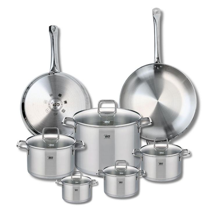 Découvrez l'ensemble de 2 poêles de cuisson et 5 faitouts Elo Profi Citrin, une batterie de cuisine en inox conçue pour répondre aux besoins des chefs amateurs et professionnels. Comprenant des poêles de 28 et 32 cm, ainsi que des faitouts de 12, 14, 16, 20 et 26 cm, cet ensemble offre une polyvalence exceptionnelle pour la préparation de vos plats favoris.