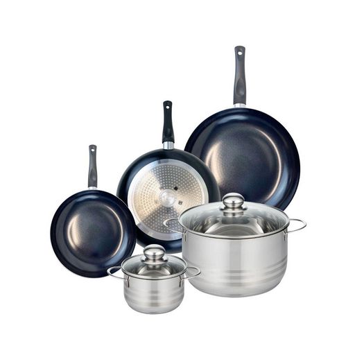 Ensemble de 3 Poêles de cuisson 20, 24 et 28 cm et 2 faitouts 14 et 24 cm Elo Prima Brillant