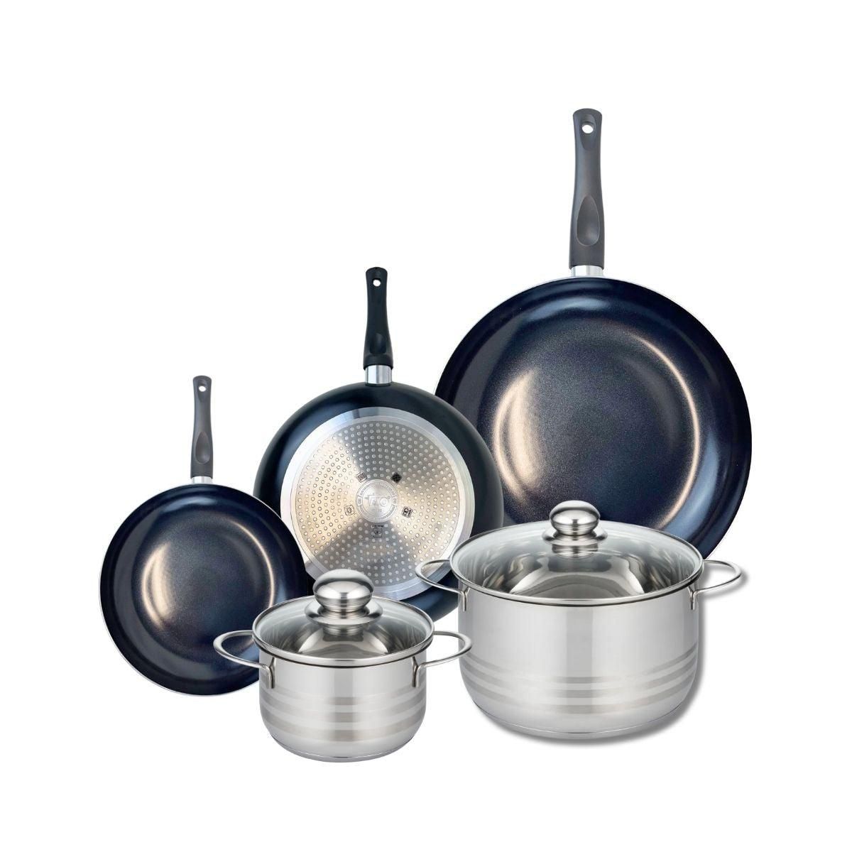 Ensemble de 3 Poêles de cuisson 20, 24 et 32 cm et 2 faitouts 16 et 24 cm Elo Prima Brillant
