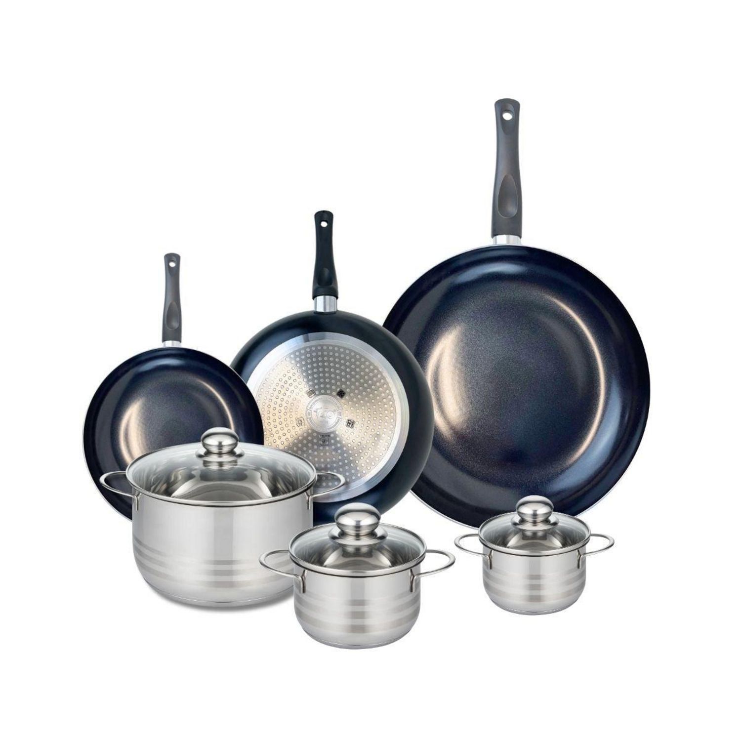 Ensemble de 3 Poêles de cuisson 20, 24 et 32 cm et 3 faitouts 12, 14 et 20 cm Elo Prima Brillant