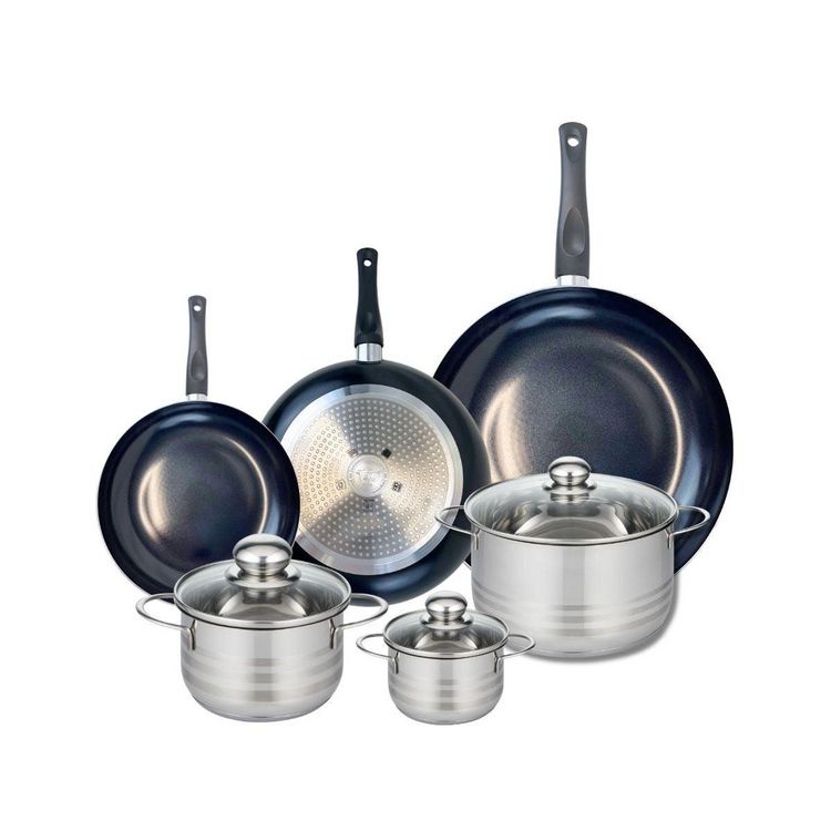 Ensemble de 3 Poêles de cuisson 20, 24 et 32 cm et 3 faitouts 12, 16 et 20 cm Elo Prima Brillant