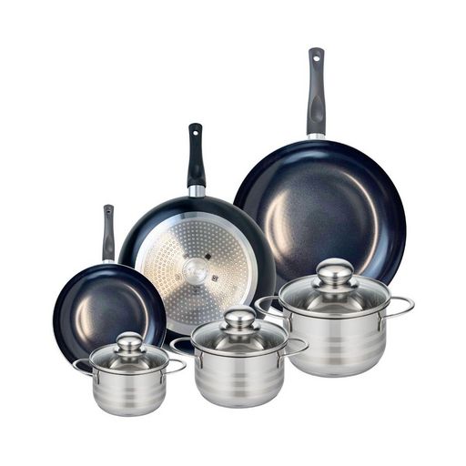 Ensemble de 3 Poêles de cuisson 20, 28 et 32 cm et 3 faitouts 12, 14 et 16 cm Elo Prima Brillant
