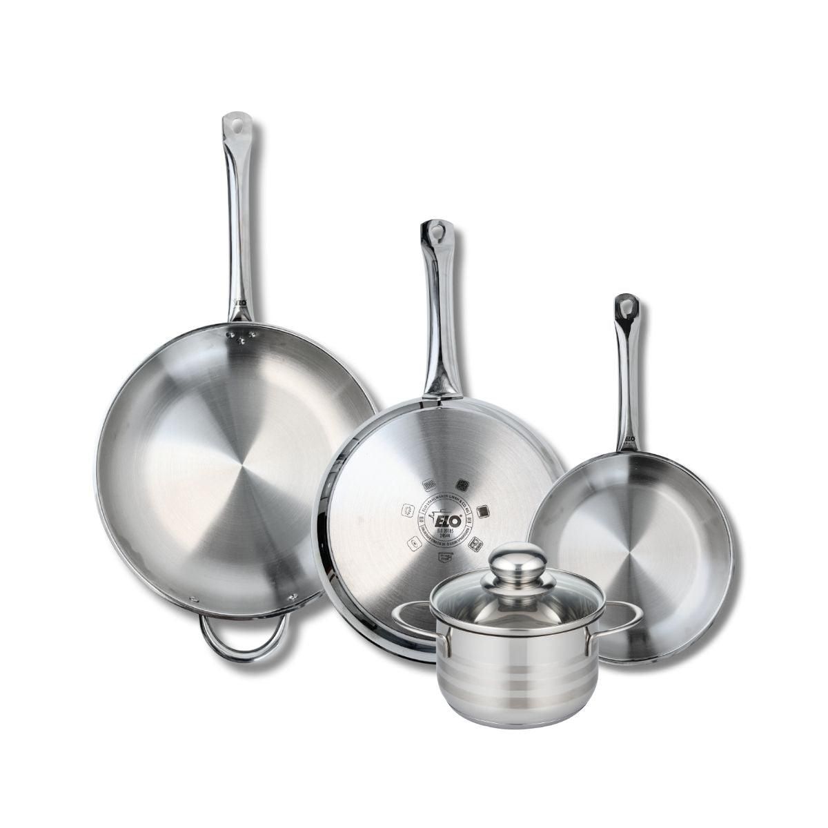 Ensemble de 3 Poêles de cuisson 24, 28 et 32 cm et 1 faitout 16 cm Elo Profi Brillant