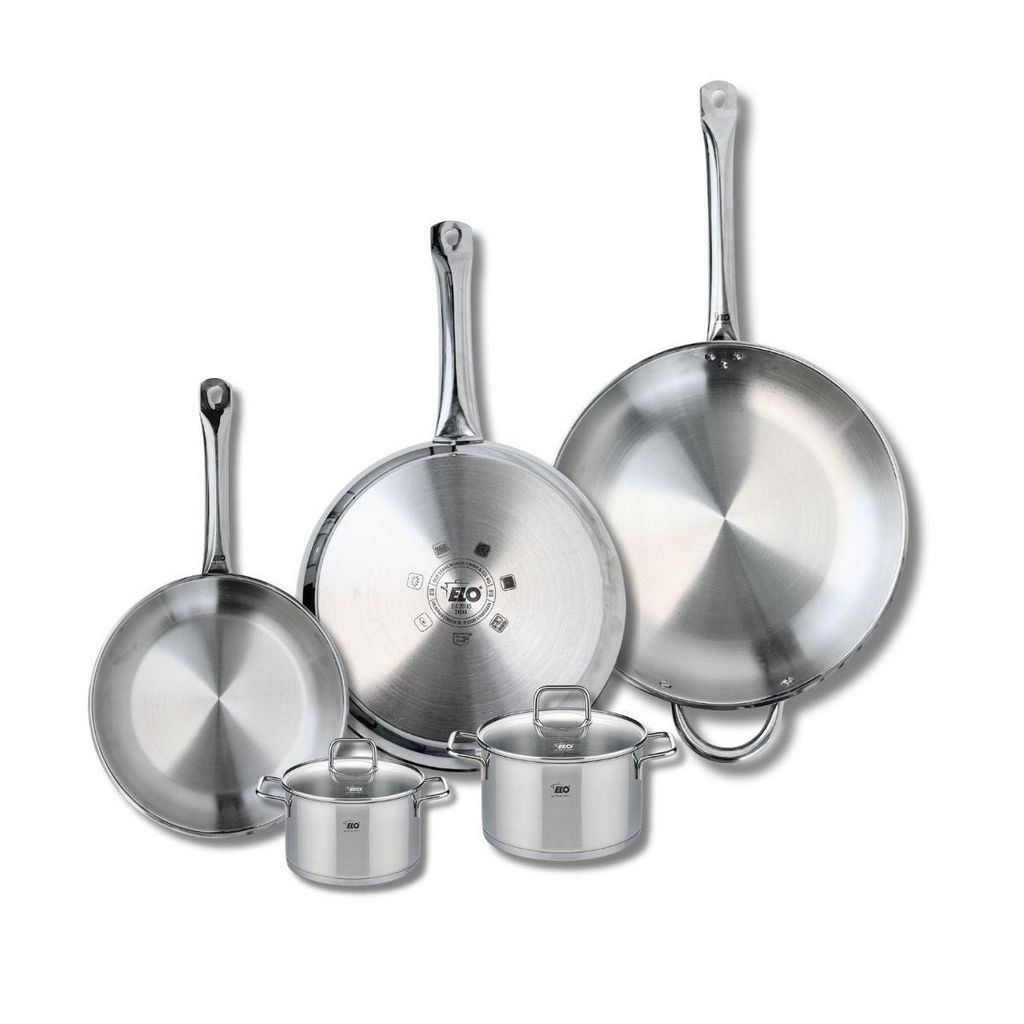 Découvrez l'ensemble de 3 poêles de cuisson et 2 faitouts Elo Profi Citrin, un choix idéal pour les passionnés de cuisine. Composé de poêles de 24, 28 et 32 cm, ainsi que de faitouts de 12 et 14 cm, cet ensemble est conçu pour répondre à tous vos besoins culinaires. Fabriqués en inox robuste, ces us
