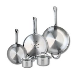 Découvrez l'ensemble de 3 poêles de cuisson et 2 faitouts Elo Profi Citrin, un choix idéal pour les passionnés de cuisine. Composé de poêles de 24, 28 et 32 cm, ainsi que de faitouts de 12 et 14 cm, cet ensemble est conçu pour répondre à tous vos besoins culinaires. Fabriqués en inox robuste, ces ustensiles sont parfaits pour tous les types de feux, y compris l'induction, garantissant une excellente conductivité thermique.