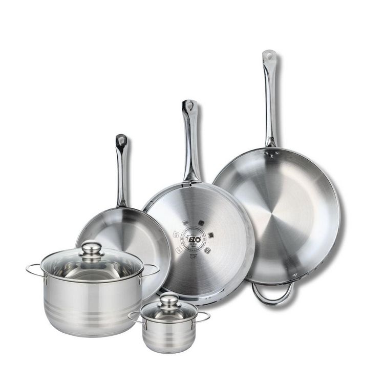 Ensemble de 3 Poêles de cuisson 24, 28 et 32 cm et 2 faitouts 12 et 20 cm Elo Profi Brillant