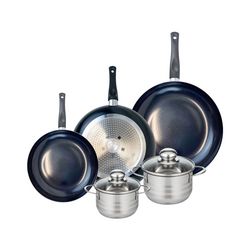 Cet ensemble est compatible avec tous les types de feux, y compris l'induction, ce qui le rend polyvalent pour tous les foyers. Les poignées ergonomiques des poêles et des faitouts assurent une prise en main confortable et sécurisée.