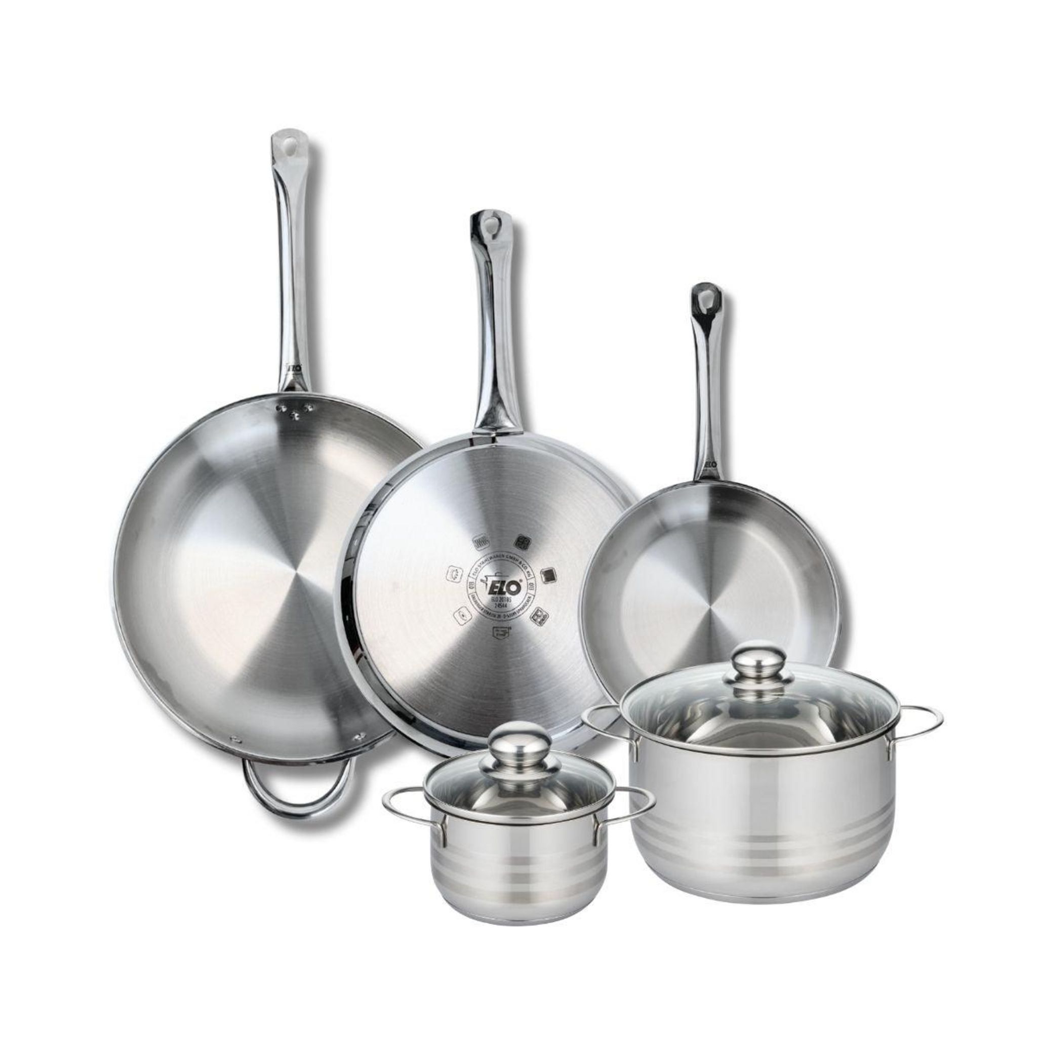 Ensemble de 3 Poêles de cuisson 24, 28 et 32 cm et 2 faitouts 14 et 20 cm Elo Profi Brillant