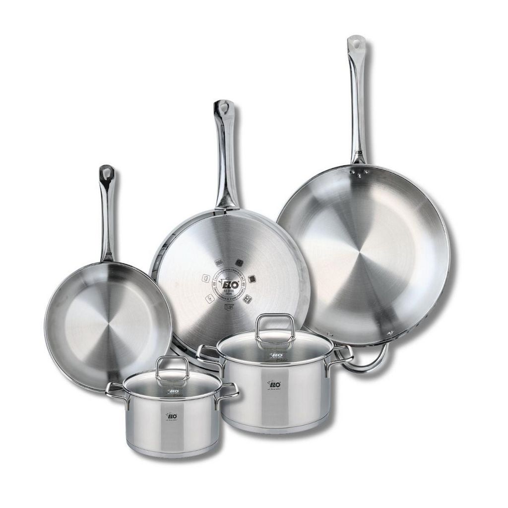 Ensemble de 3 Poêles de cuisson 24, 28 et 32 cm et 2 faitouts 16 et 20 cm Elo Profi Citrin