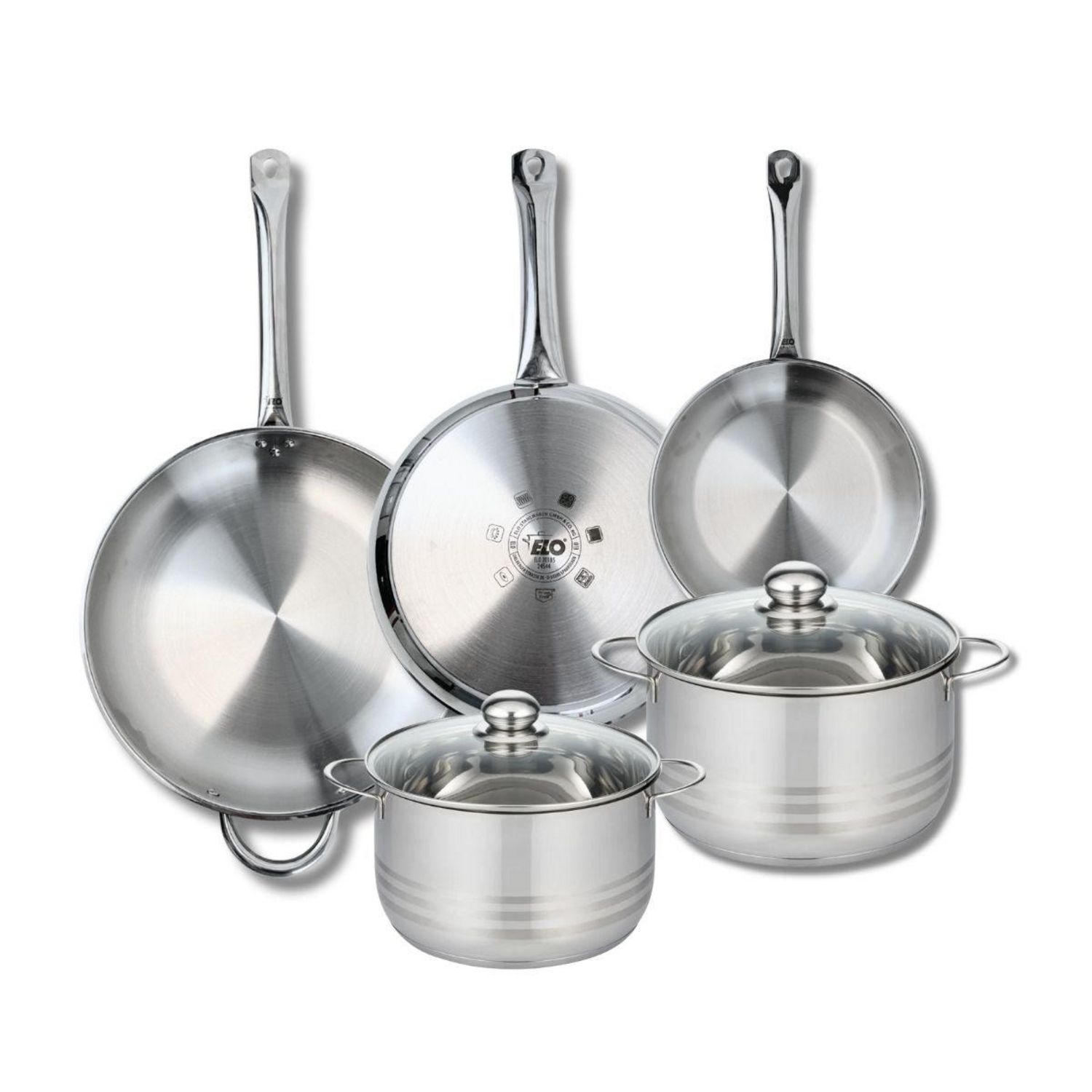 Ensemble de 3 Poêles de cuisson 24, 28 et 32 cm et 2 faitouts 20 et 24 cm Elo Profi Brillant
