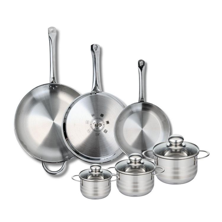 Ensemble de 3 Poêles de cuisson 24, 28 et 32 cm et 3 faitouts 12, 14 et 16 cm Elo Profi Brillant
