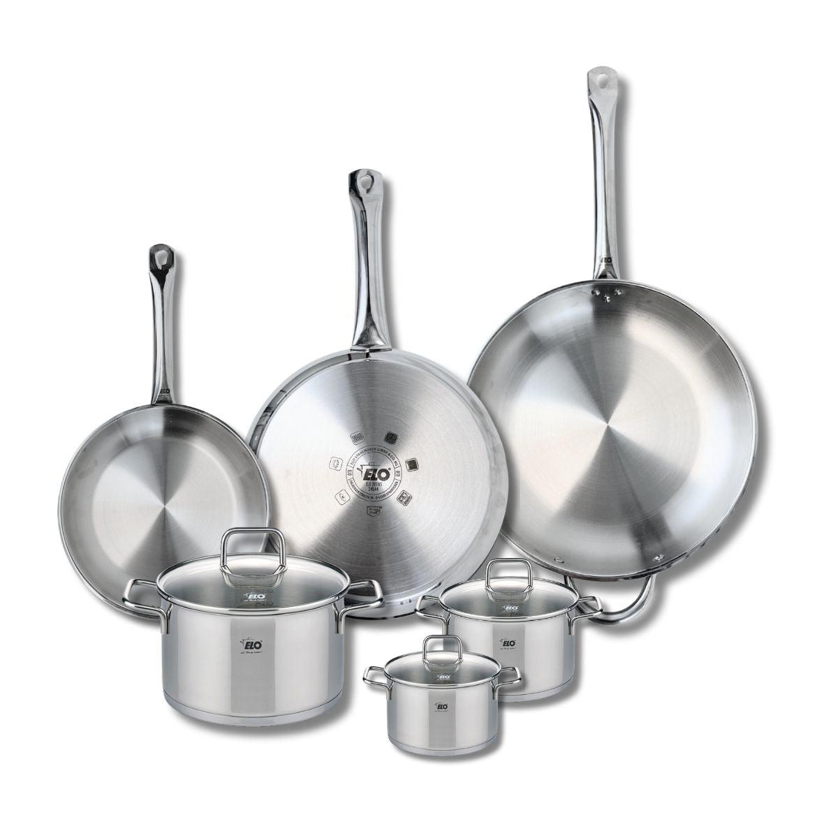 Ensemble de 3 Poêles de cuisson 24, 28 et 32 cm et 3 faitouts 12, 14 et 20 cm Elo Profi Citrin