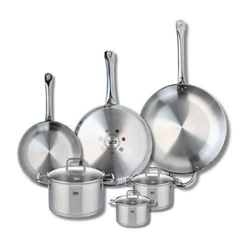 Découvrez l'ensemble de 3 poêles de cuisson et 3 faitouts Elo Profi Citrin, un choix idéal pour les amateurs de cuisine soucieux de la qualité. Conçu en inox robuste, cet ensemble garantit une cuisson saine sans revêtement, exempt de PFAS. Les poêles de 24, 28 et 32 cm offrent une polyvalence inégal