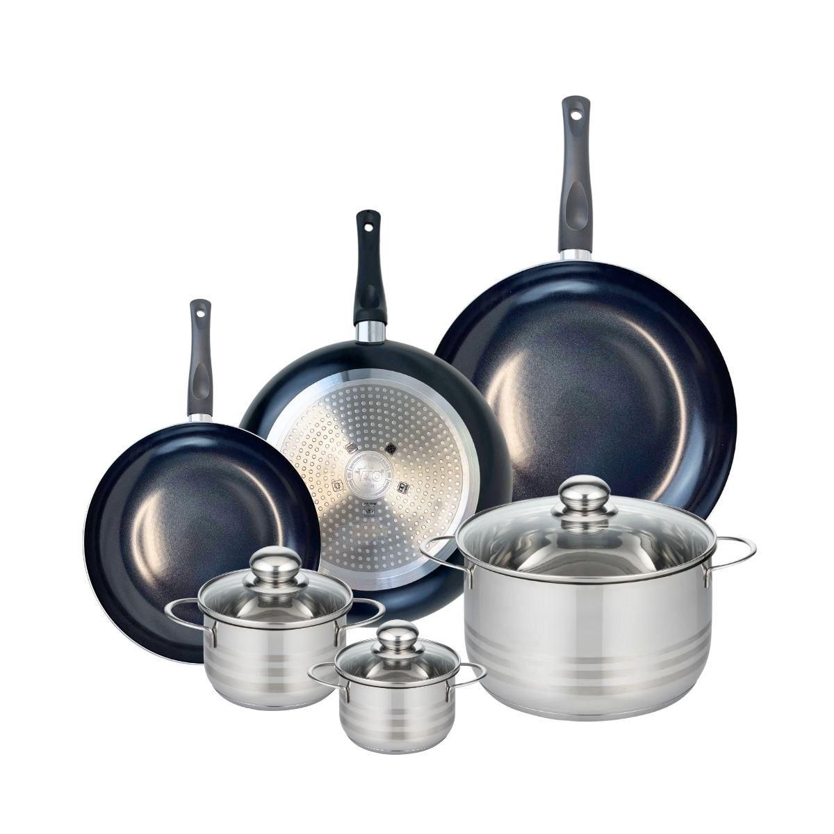 Ensemble de 3 Poêles de cuisson 24, 28 et 32 cm et 3 faitouts 12, 14 et 24 cm Elo Prima Brillant