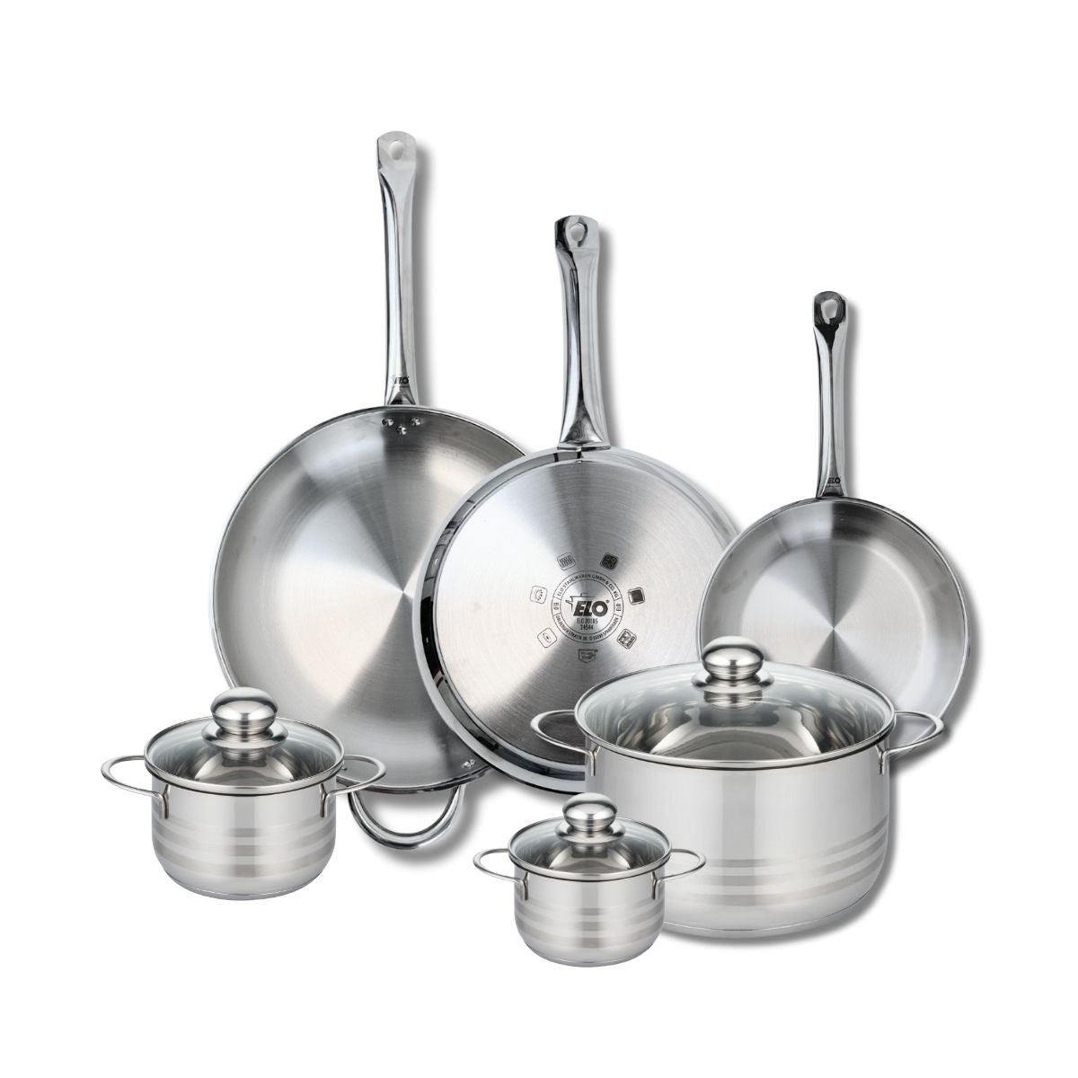 Ensemble de 3 Poêles de cuisson 24, 28 et 32 cm et 3 faitouts 12, 14 et 24 cm Elo Profi Brillant