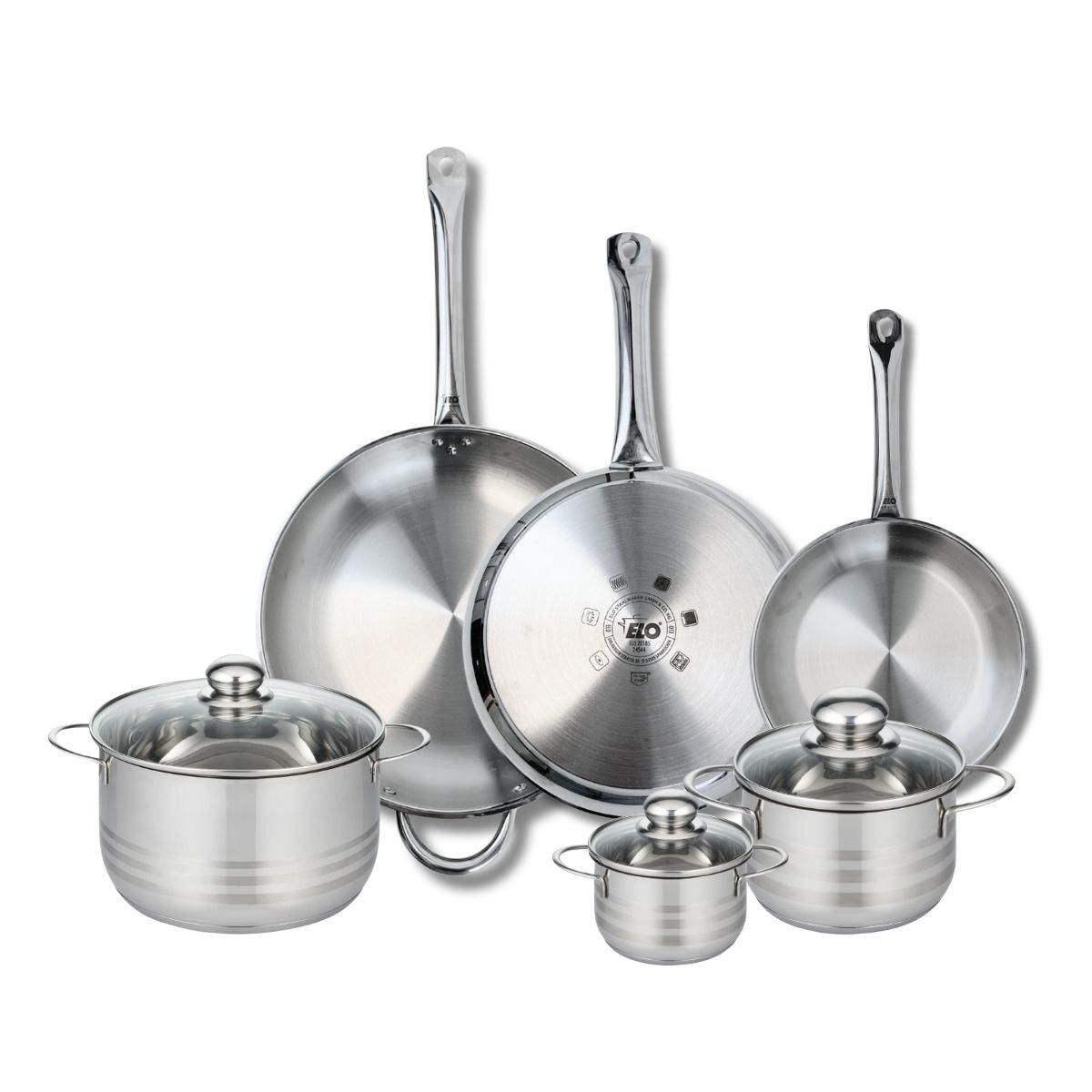 Ensemble de 3 Poêles de cuisson 24, 28 et 32 cm et 3 faitouts 12, 16 et 20 cm Elo Profi Brillant