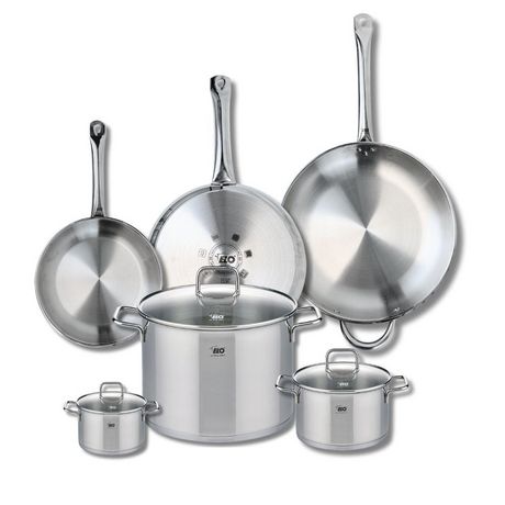 Ensemble de 3 Poêles de cuisson 24, 28 et 32 cm et 3 faitouts 12, 16 et 26 cm Elo Profi Citrin