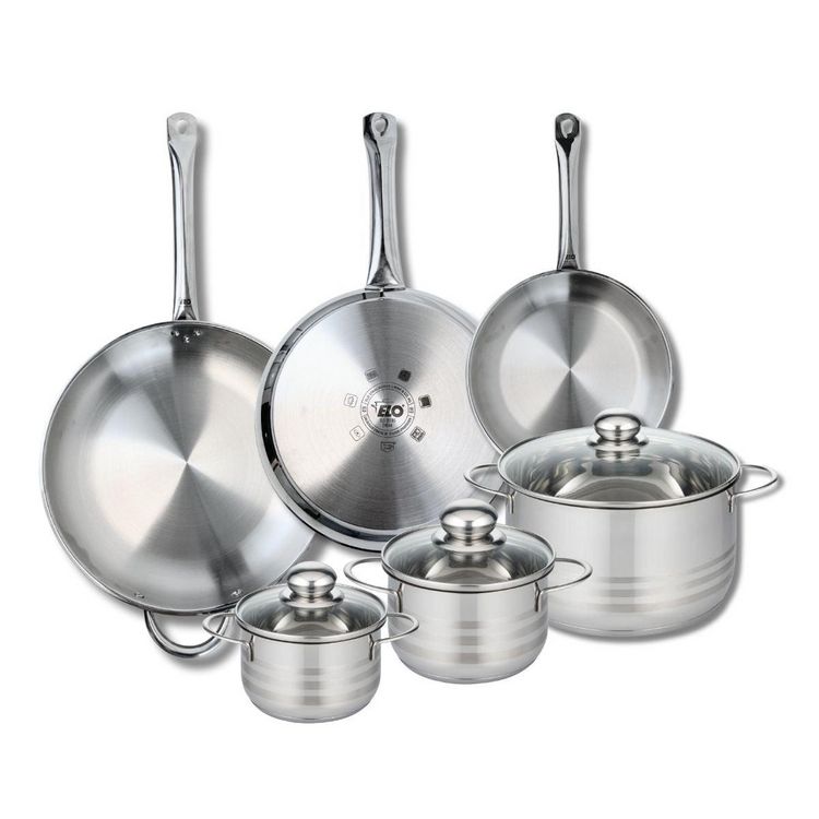 Ensemble de 3 Poêles de cuisson 24, 28 et 32 cm et 3 faitouts 14, 16 et 24 cm Elo Profi Brillant