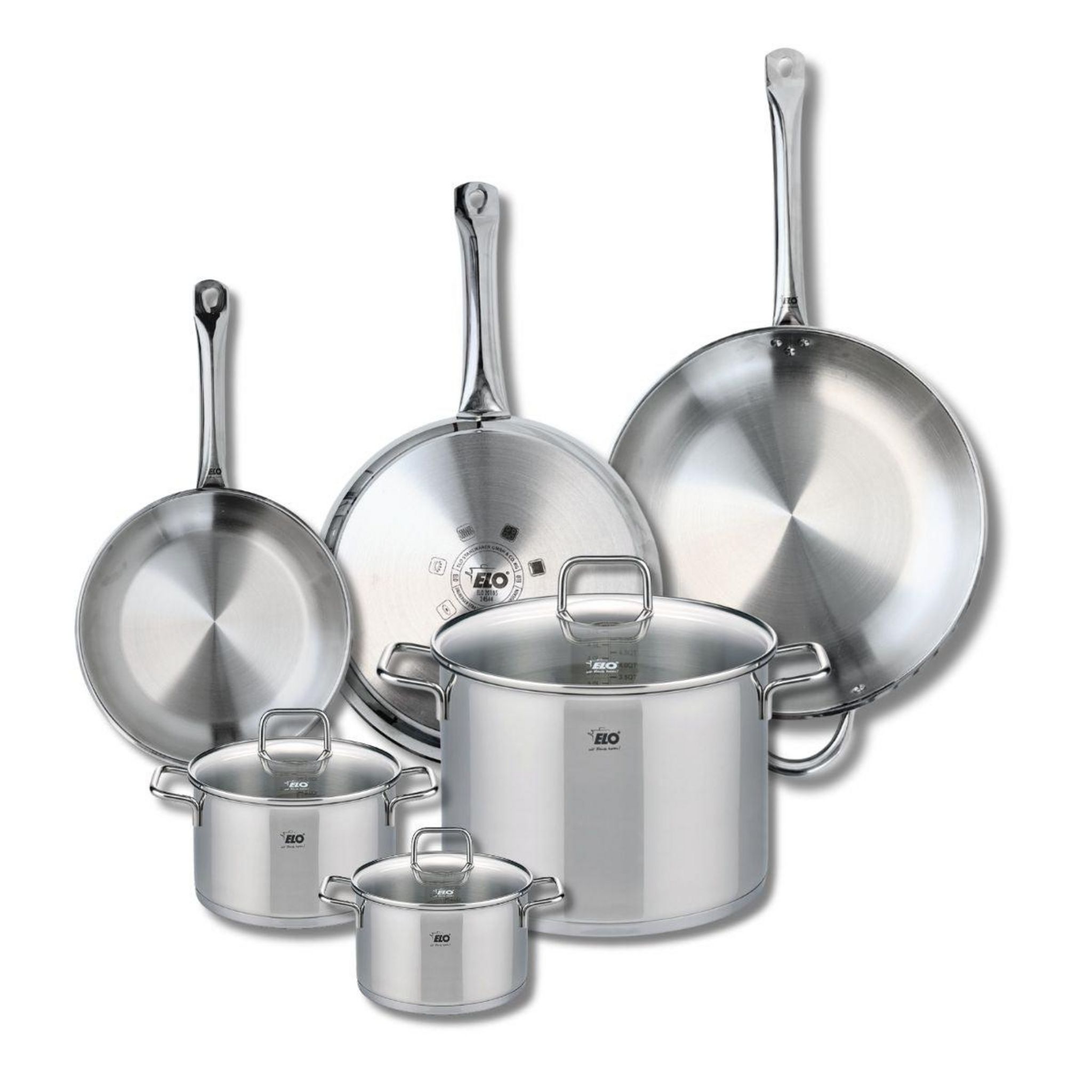Découvrez l'ensemble de cuisine Elo Profi Citrin, composé de 9 pièces essentielles pour tous vos besoins culinaires. Cet ensemble comprend trois poêles de cuisson de 24, 28 et 32 cm, ainsi que trois faitouts de 14, 16 et 26 cm, tous fabriqués en inox de haute qualité. Conçus sans revêtement et sans PFAS, ces ustensiles garantissent une cuisson saine et sécurisée.