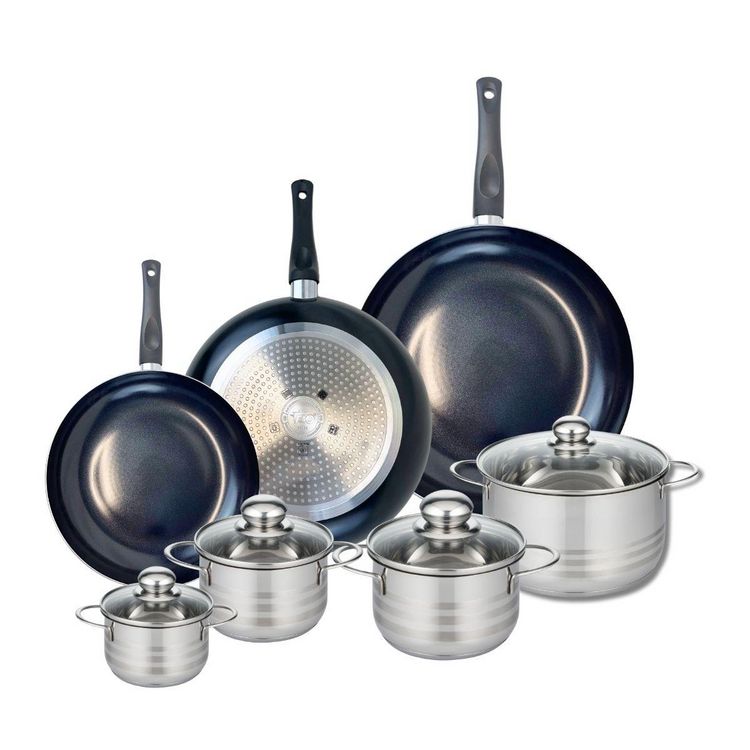 Ensemble de 3 Poêles de cuisson 24, 28 et 32 cm et 4 faitouts 12, 14, 16 et 20 cm Elo Prima Brillant