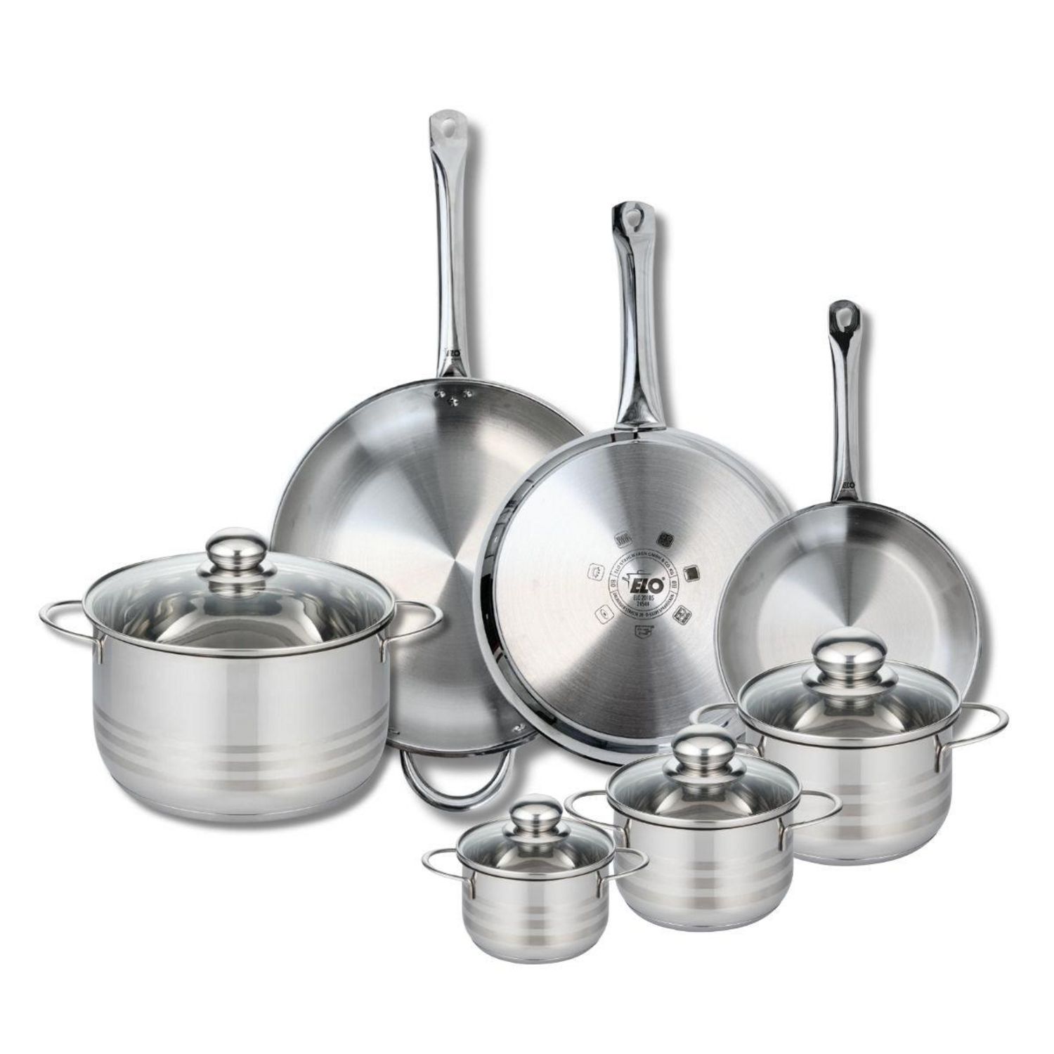 Ensemble de 3 Poêles de cuisson 24, 28 et 32 cm et 4 faitouts 12, 14, 16 et 24 cm Elo Profi Brillant