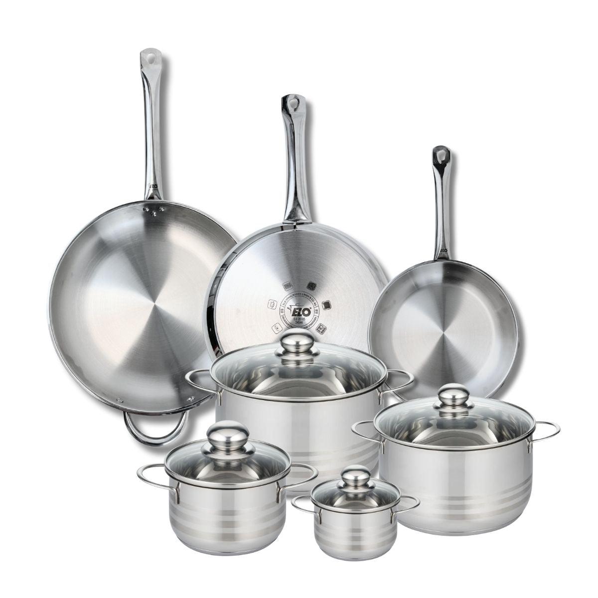 Ensemble de 3 Poêles de cuisson 24, 28 et 32 cm et 4 faitouts 12, 16, 20 et 24 cm Elo Profi Brillant