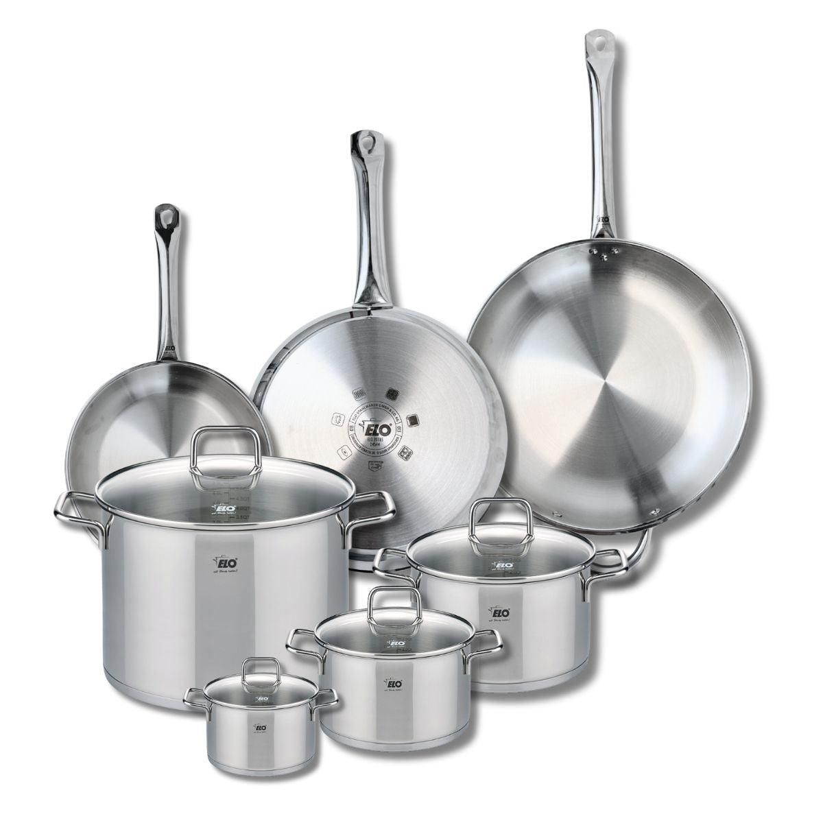 Découvrez l'ensemble de 3 poêles de cuisson et 4 faitouts Elo Profi Citrin, une batterie de cuisine de 11 pièces parfaite pour tous vos besoins culinaires. Fabriqués en inox robuste, ces ustensiles sont conçus pour résister à l'épreuve du temps, tout en offrant une excellente conductivité thermique.