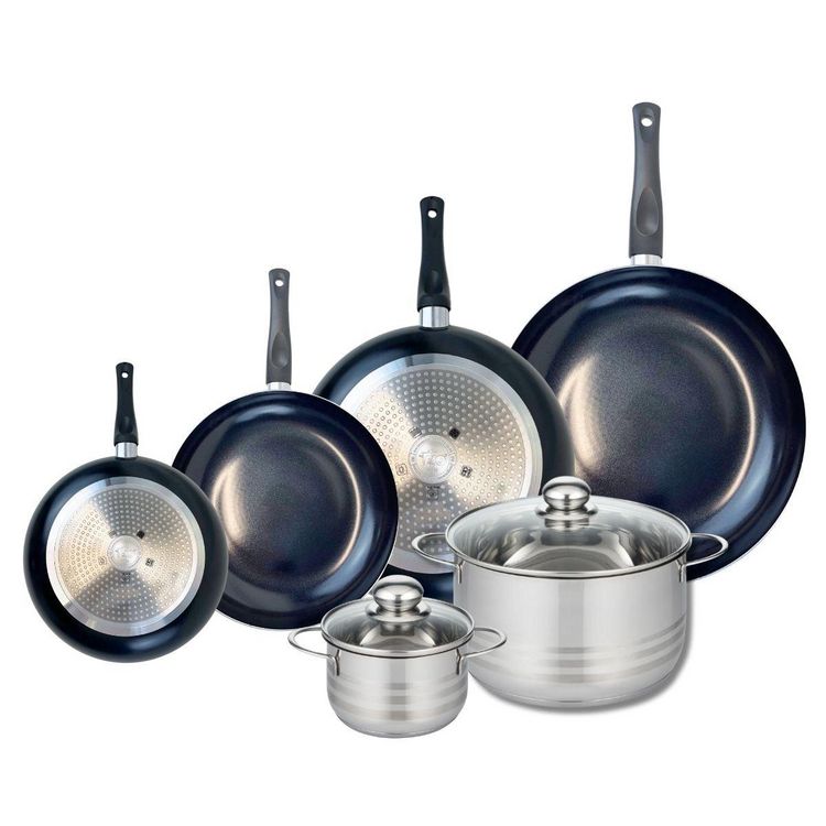 Ensemble de 4 Poêles de cuisson 20, 24, 28 et 32 cm et 2 faitouts 14 et 24 cm Elo Prima Brillant